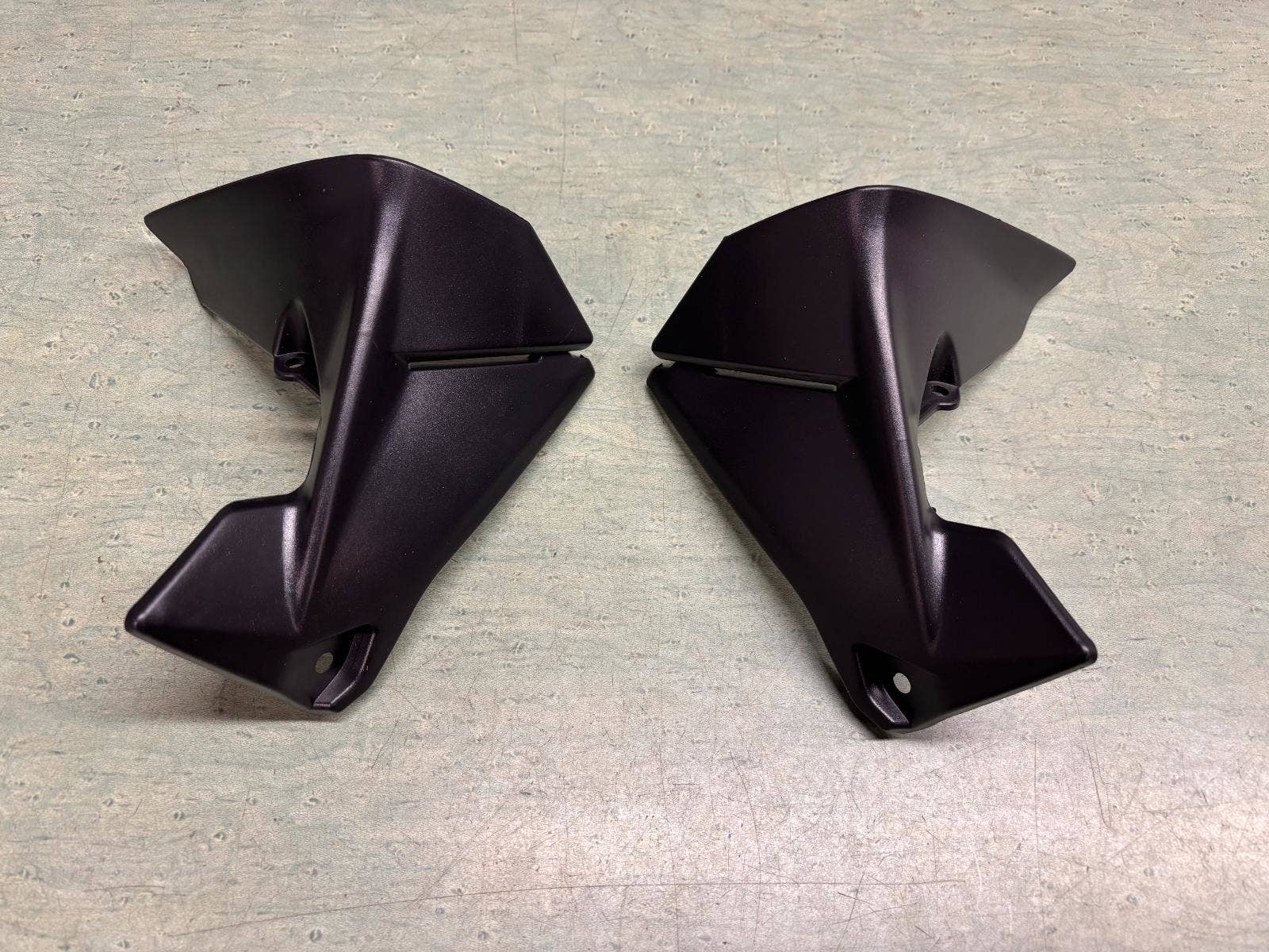 umístěný pod řídítky a plexi