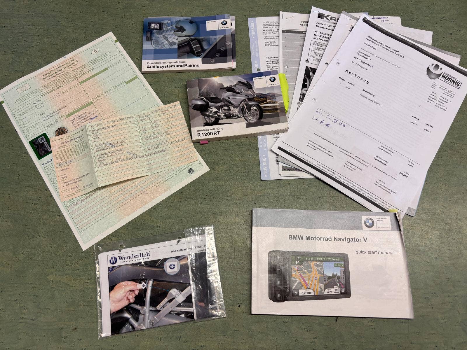 K BMW je servisní kniha, servisní historie, TP, protokol z Německé STK, 2 x klíč